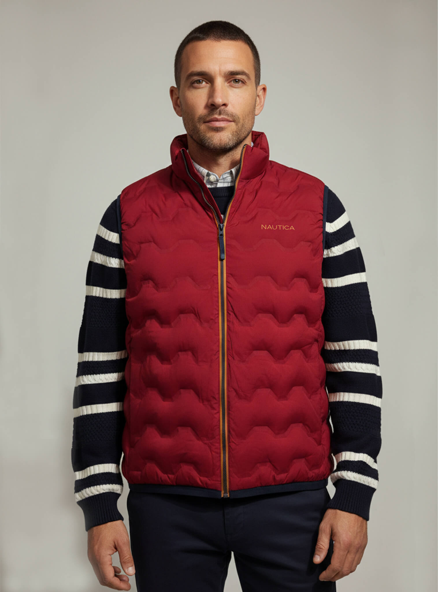 Esta chaqueta sin mangas con diseño acolchado, confeccionada con tejido resistente al agua, cuente múltiples bolsillos seguros y con un cuello alto, perfecto para elevar cualquier look de otoño.